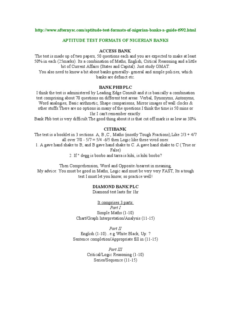 Aptitude Test Formats Of Nigerian Banks Graduate Management